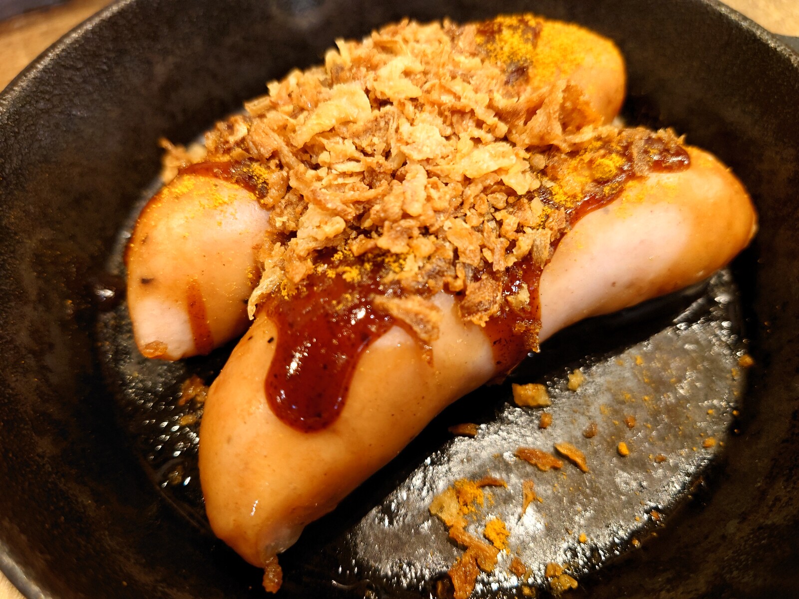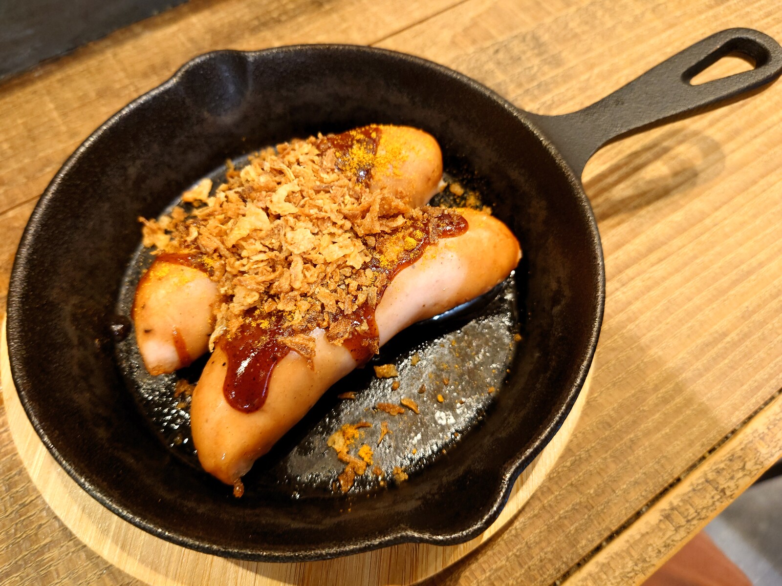 。かくして、この日は、『しぼりたてかちこま』があったから、頼んでみたよ。1合で頼んだんだけど、思ったよりも大きな徳利に入って登場してきたんだ。たっぷり飲めたのがうれしい限り。お通しのラー油のかかった豆腐が、これまた絶品だったんだ。