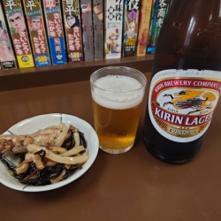 月見大町店でキリンビールをあおりながら天ぷらそば