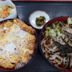 この日は、富山市大町にある老舗のそば、うどん、丼の店「月見大町店」でランチしてみたんだ。この日の注文は『ざるかつ重』をそばで。丸い重箱の一段にはカツ丼が、もう一段には冷たいぶっかけそばが入って来る、ボリュームたっぷりの一品だよ。漬け物とサラダもついてい ...