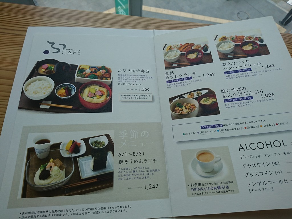スタイリッシュな店内に、スタイリッシュなメニュー。FUMUROYA=不室屋は、金沢の老舗の麩屋さんだってことは、みんな知ってるよね。カフェっていいながら、抹茶ラテとか豆乳麹ドリンクとか、かなり和な趣なのは、きっとそのせいだよね。