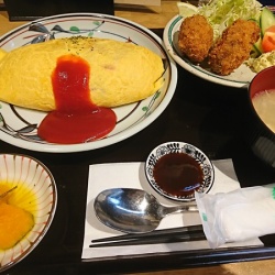 八ぶんめでオムライスとカキフライセットを食べると胃袋は八分目では収まらない