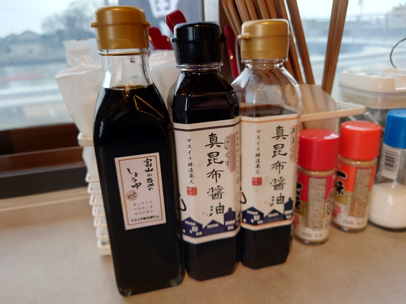 醤油が3種類用意してあって、自分に合った味を探すのも楽しみ。